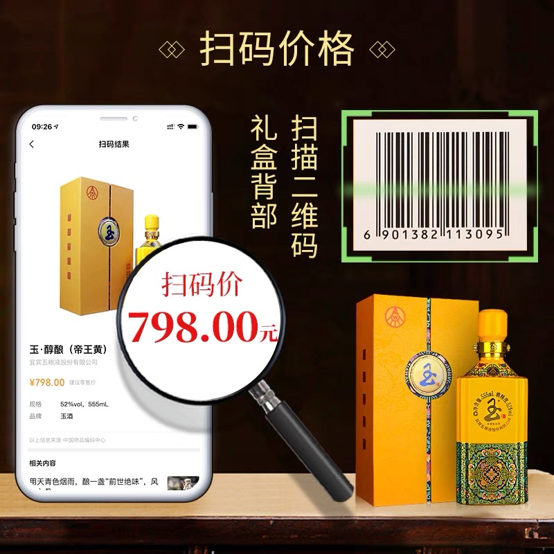 五粮液出品 玉酒帝王黄 52度浓香型白酒